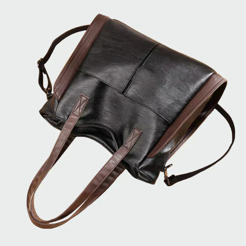 Elegantná kabelka cez rameno v čiernej farbe s hnedými detailmi, ktoré dodávajú nadčasový charakter a jedinečný kontrast. Jej priestranný dizajn ponúka pohodlie a praktickosť pre každodenné použitie, zatiaľ čo odnímateľný dlhý popruh umožňuje nosenie aj krížom. Doplnok, ktorý kombinuje štýl a funkčnosť, ideálny do kancelárie aj pre elegantné casual vzhľady.