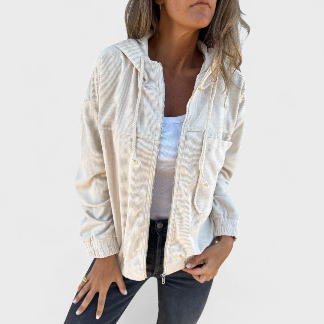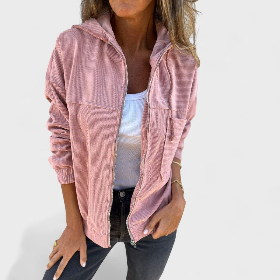 Pavla - Sametový kabát s kapucňou a zipsom