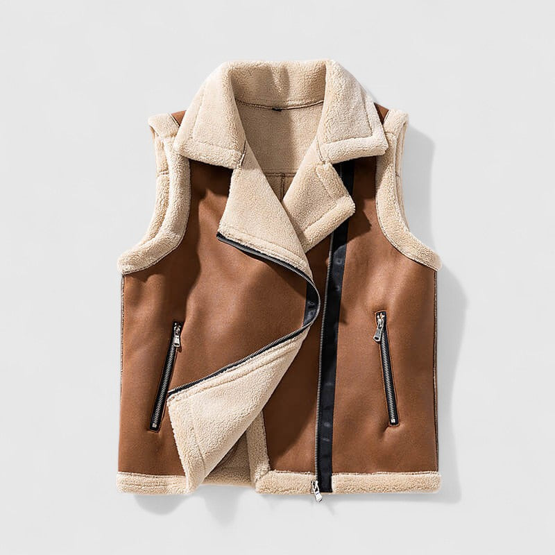 S príchodom chladných jesenných dní je vesta Tereza ideálnou voľbou pre tých, ktorí hľadajú štýl, pohodlie a ochranu. Je vyrobená z vysoko kvalitnej vegánskej kože, kombinuje vetruodolnú vonkajšiu vrstvu s mäkkým a hrejivým fleeceom vo vnútri, takže poskytuje dokonalú izoláciu, bez toho, aby bola ťažká.