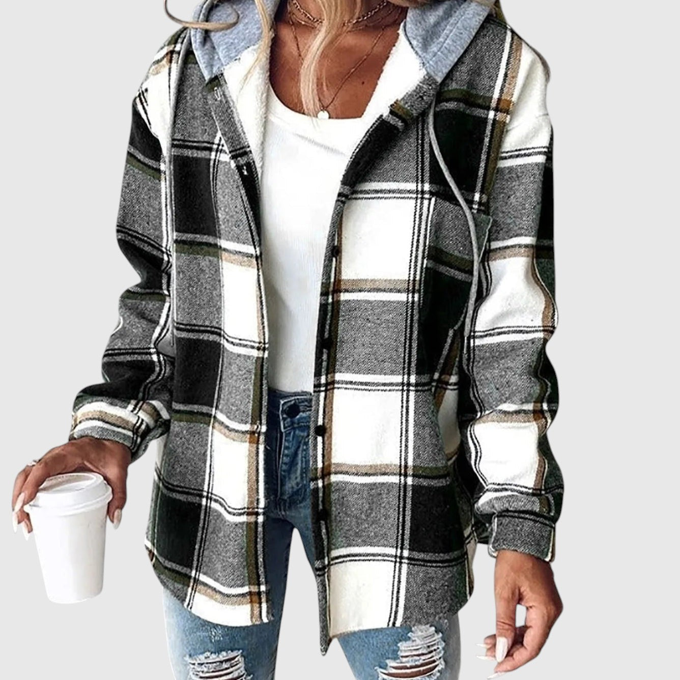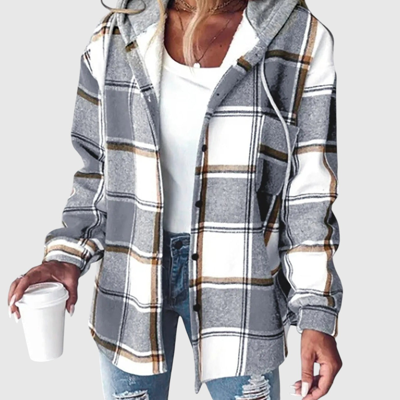Maya – Kockovaný ležérny kabát s kapucňou