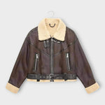 Kožená Krátka Bunda s Kožešinou a Páskom