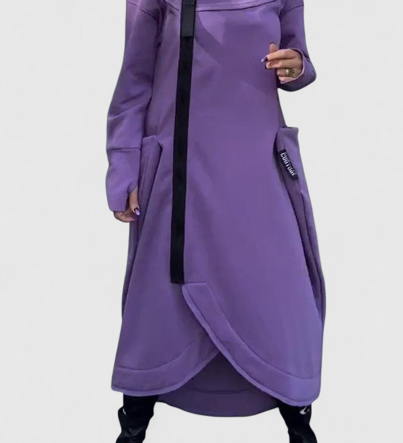 MARIE-Dlhý kabát s kapucňou a zipsom