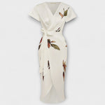Okouzlující zavinovací midi šaty s živým listovým potiskem a lichotivým V-výstřihem. Ideálne pre akúkoľvek príležitosť, od brunchov po vonku konané akcie.
