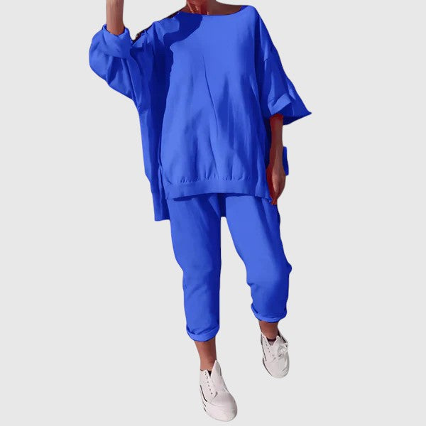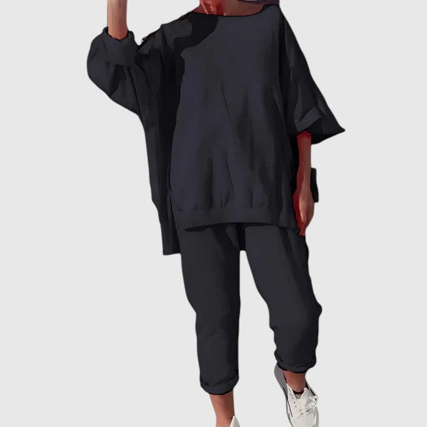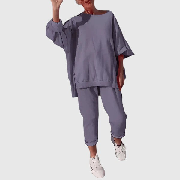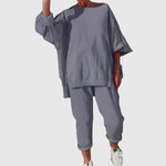 Doprajte si pohodlie a štýl s domácou súpravou Gianna. Tento voľný strih a moderný dizajn vám zabezpečia maximálny komfort pri každodennom nosení doma aj počas voľného času.