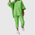 Súprava je vyrobená z mäkkého, ľahkého a priedušného materiálu, ktorý je príjemný na pokožke a poskytuje slobodu pohybu. Vďaka svojmu sviežemu a módnemu vzhľadu sa hodí nielen na relaxáciu, ale aj na nenútené vychádzky von.