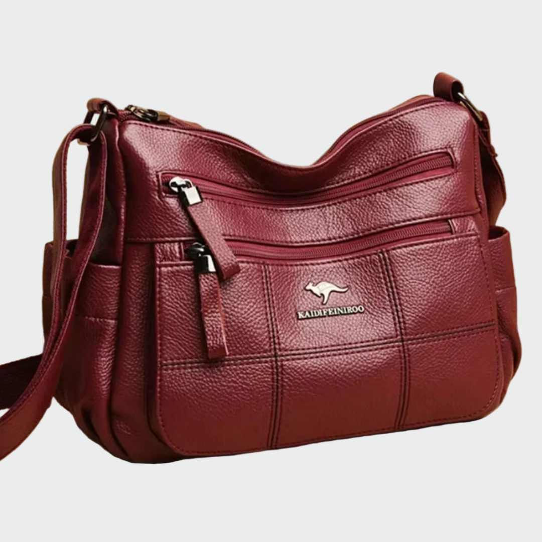 Štýlová taška cez rameno v bordovej farbe, ideálna pre ženy, ktoré chcú praktičnosť a eleganciu v každom vzhľade. Disponuje niekoľkými kapsami so zipsom pre bezpečné uloženie osobných vecí, zatiaľ čo jej mäkká textura poskytuje pohodlie pri používaní. Nastaviteľný ramenný popruh umožňuje prispôsobenie štýlu a potrebám, čo robí tašku vhodnou pre každodenné aktivity, pracovné povinnosti a prechádzky.