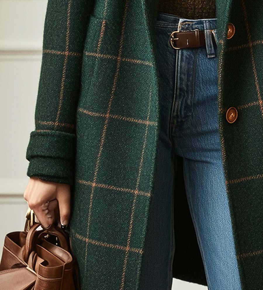 Florencia | Retro Károvaný Tweedový Kabát s Klopami