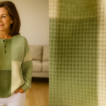 Zostaňte lahodne v teple, keď je vonku približne 5 °C : štruktúrovaný úplet dvojitej hrúbky so vnútrom zamatovo mäkkým ako fleece pre obklopujúcu jemnosť, priedušnosť, ktorá zabraňuje vlhkosti, a elegantným voľným strihom , ktorý sa neprilepí na brucho ani na boky. Ľahko sa kombinuje s džínsami, midi sukňou alebo legínami — od rána do večera, bez zaťaženia siluety.