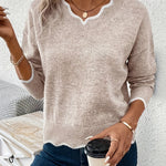 Dotyk, ktorý upokojuje, strih, ktorý rešpektuje, výstrih, ktorý oslní — pulóver Elin premieňa chladné rána na malé cenné chvíle. Navrhnutý pre ženy, ktoré chcú zostať elegantné bez námahy, aj keď teplomer klesá.