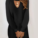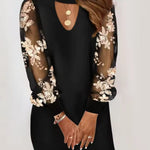 Šaty Ema nenápadne priťahujú pozornosť. Hlboký výstrih do V elegantne zvýrazňuje siluetu, zatiaľ čo priehľadné dlhé rukávy dodávajú jemný, ženský nádych.