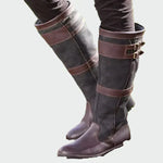 Dámske **vysoké jazdecké topánky** v kombinácii hnedej a tmavošedej farby, ktoré vyžarujú eleganciu a praktickosť. **Dvojité pracky** na hornej časti a zosilnené švy zabezpečujú odolnosť a pevné uchytenie, zatiaľ čo klasický dizajn ich robí ideálnymi pre každú príležitosť – od casual vzhľadov po outdoorové aktivity.